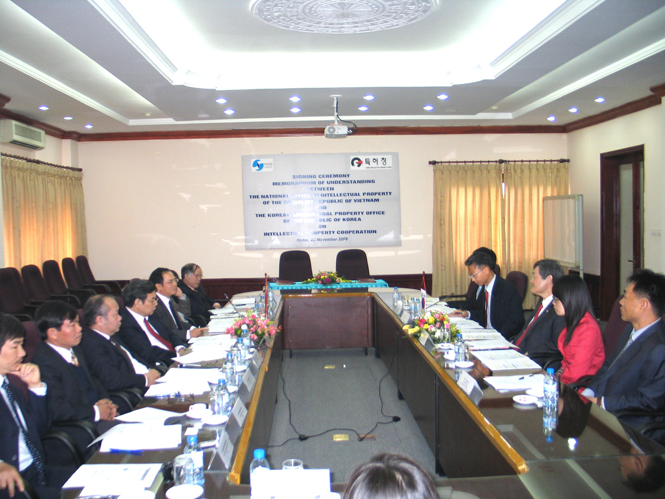 A high ranking Delegation of the Korean Intellectual Property Office (KIPO) headed by Mr. Jung-Sik KOH, KIPO’s Commissioner, paid an official visit to the National Office of Intellectual Property of Vietnam (NOIP) on 23 November 2009. The Director General of the NOIP, Mr. Tran Viet Hung, and Heads of NOIP Divisions received the Delegation and held a meeting where the two Offices exchanged information on their recent development of intellectual property system and international issues concerned by the Parties.