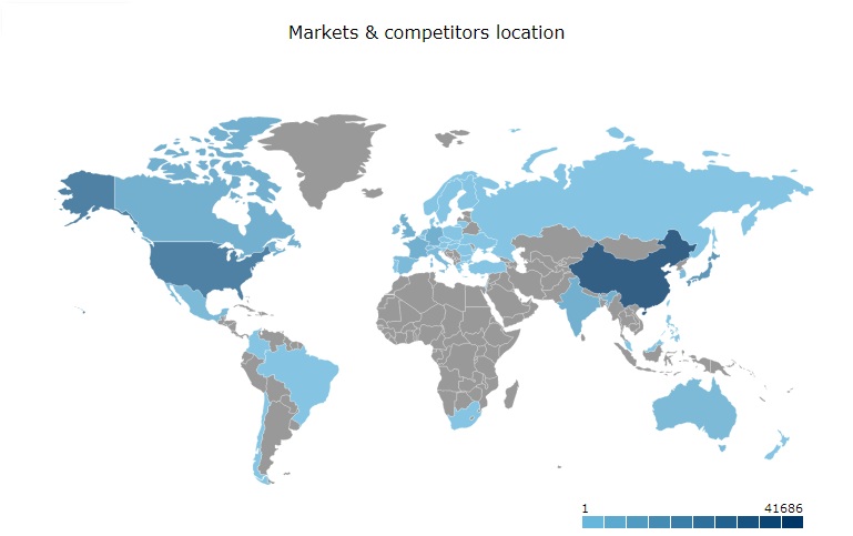 Biểu đồ này minh họa số lượng họ sáng chế được nộp tại các Cơ quan sáng chế của quốc gia khác nhau. Qua đó cũng thể hiện thị trường nào là tiềm năng với các chủ đơn trong lĩnh vực công nghệ đang xem xét.